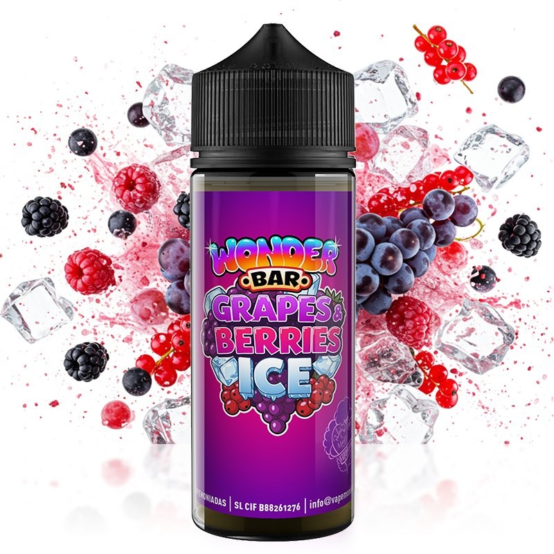 El aroma Grapes & Berries Ice en formato Longfill de la gama Wonder Bar de Vapemoniadas combina lo mejor de la dulzura natural de las uvas y las bayas con una explosión refrescante de hielo, creando un equilibrio perfecto entre lo frutal y lo fresco. Características: Botella de 120ml con 30ml de aroma Tapón a prueba de niños Dilución: 25% Maceración: 15 días Advertencia: este producto es un aroma y debe diluirse