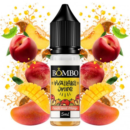 El aroma MiniLongfill Peach and Mango de Wailani Juice by Bombo es el resultado de la unión del exquisito néctar de melocotón y mango. Un sabor frutal original y auténtico para degustar a diario. Características: Botella de 15ml con 5ml de aroma Tapón a prueba de niños Dilución: 33,33% Advertencia: este producto es un aroma y debe diluirse.