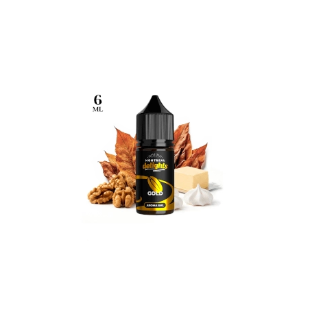 Montreal Delights Gold Aroma Longfill – Crema de mantequilla, nueces tostadas, merengue y tabaco Montreal Delights Gold combina una suave crema de mantequilla con nueces tostadas, merengue ligero y un sutil toque de tabaco de Montreal Original, logrando un perfil dulce, refinado y equilibrado. El proceso de extracción por ósmosis inversa de Montreal Original arantiza un tabaco puro, seco y auténtico, ofreciendo una calidad aromática superior. Características: Porcentaje: 100%PG Formato: 6ml Capacidad del bote: 30ml Maceración: 2 semanas Sabor: crema de mantequilla, nueces tostadas, merengue, tabaco Sin nicotina Advertencia: este producto es un aroma y debe diluirse.