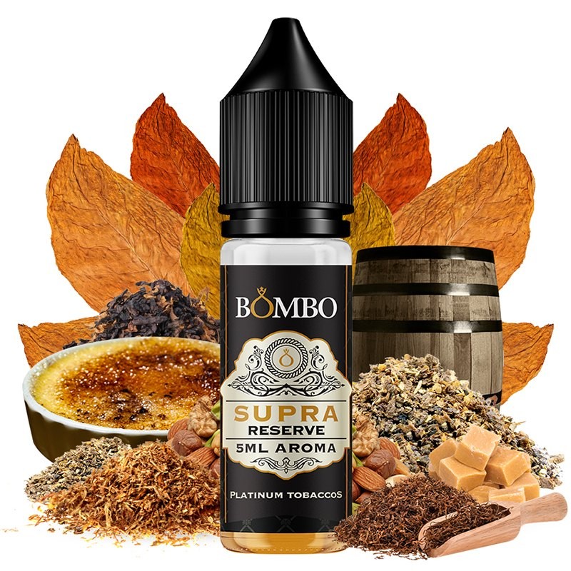 El aroma MiniLongfill Supra Reserve de Platinum Tobaccos by Bombo es la unión del mejor tabaco dulce con equilibrados matices acaramelados y tostados que, junto a una innovadora técnica de doble maceración, lo sitúa en el siguiente nivel dentro de los RY4. Premio al mejor tabaquil en Vapexpo Spain 2022.